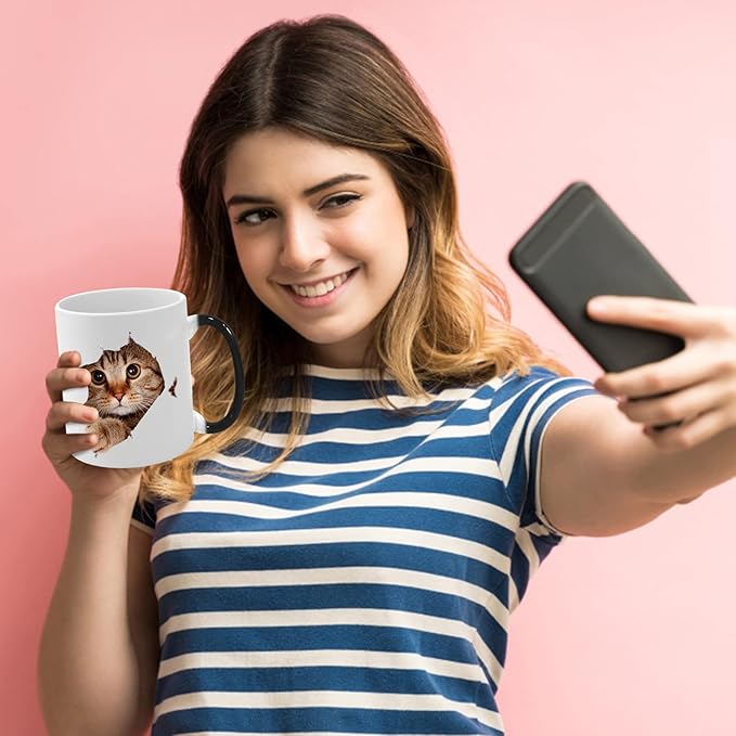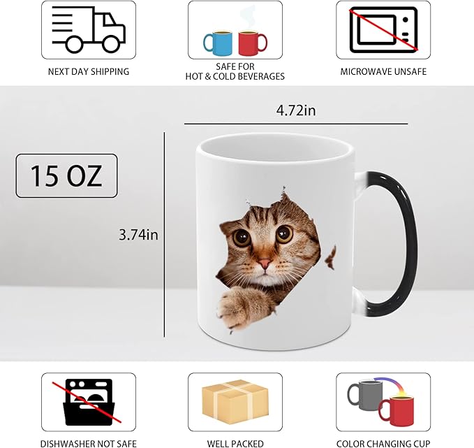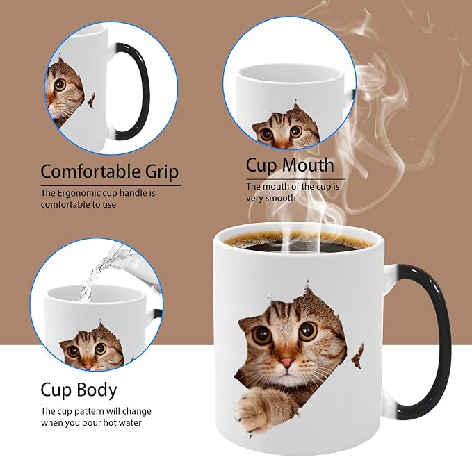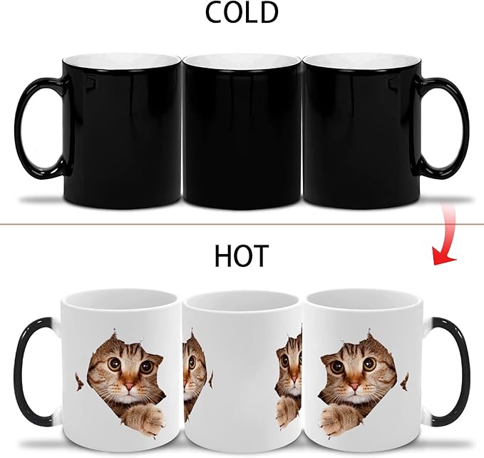 Caliamary Heat Changing Cat Mug - Funny Ceramic Coffee Cup, 11 oz Heat Sensitive Color Changing, Cute Xmas Gift for Women Men Kids