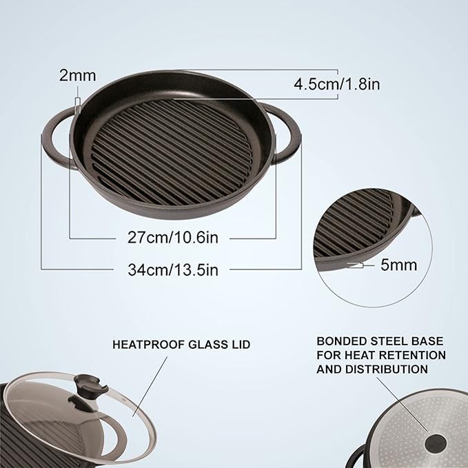 The Whatever Pan Cast Aluminum Griddle Pan for Stove Top - Lighter than Cast Iron Skillet Pancake Griddle with Lid - Nonstick Stove Top Grill 10.6" Diameter by Jean Patrique