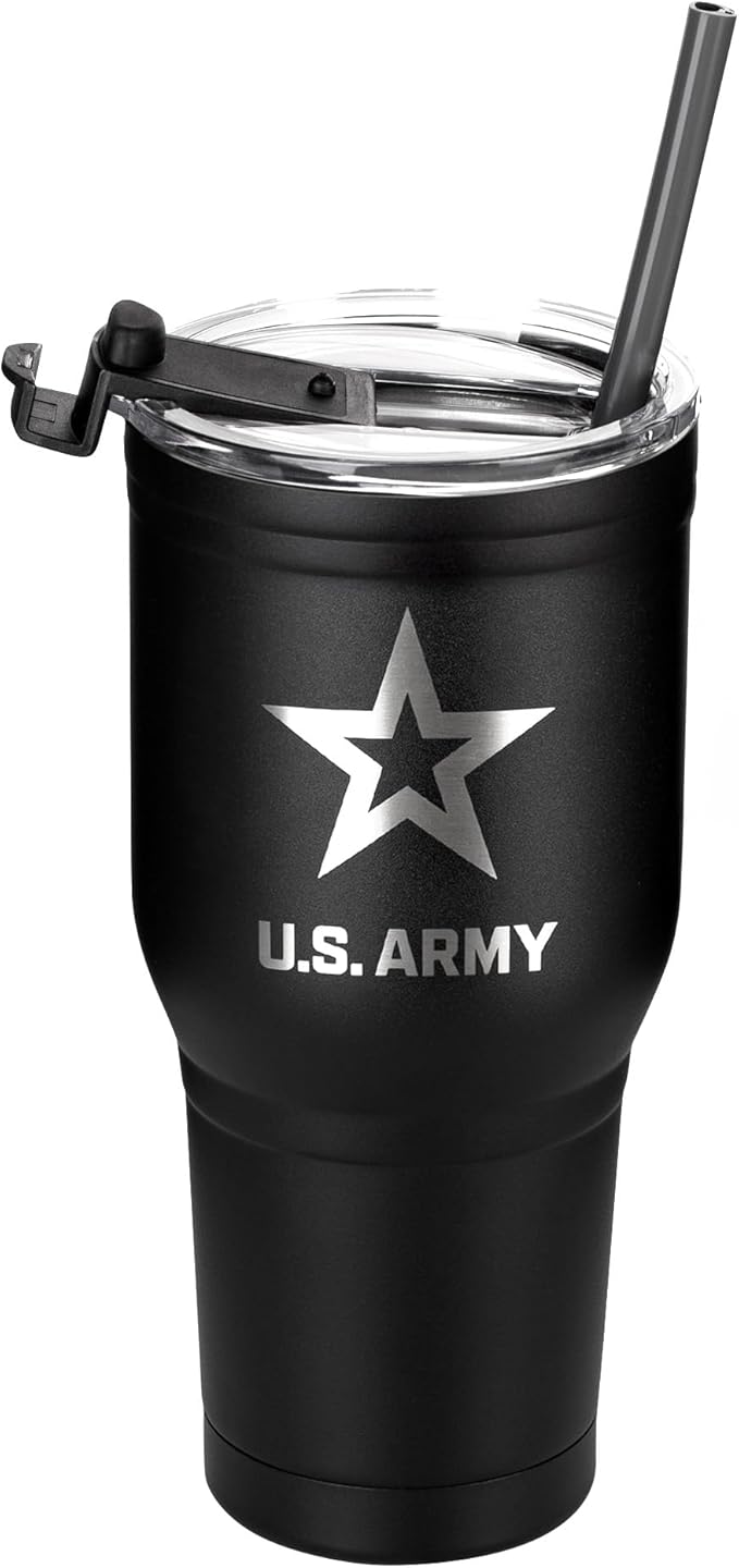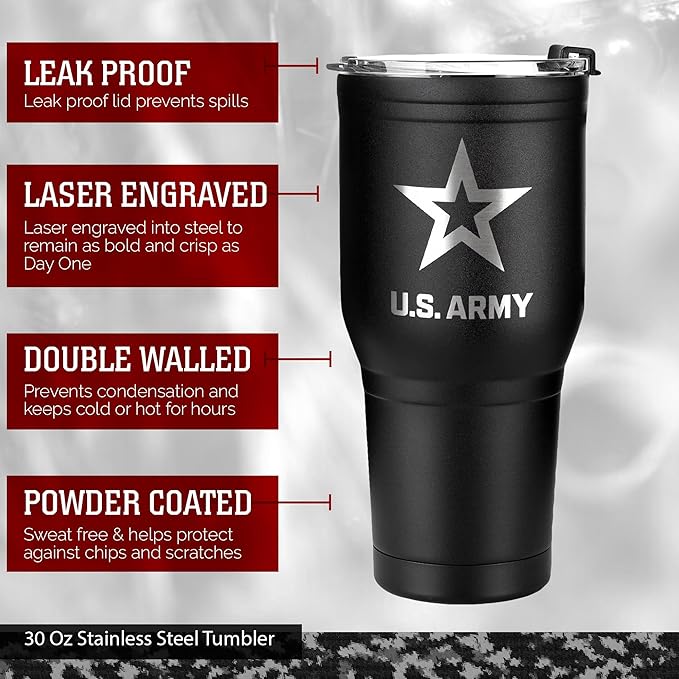 Military Gift Shop 30 oz US-Army Black Double Wall Vacuum Insulated Stainless Steel Travel Mug - Soldier Deployment Gifts - Army 30oz Tumbler