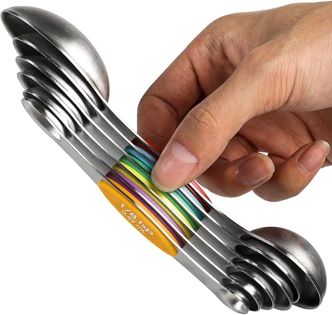 Magnetic Measuring Spoons Set Stainless Steel Stackable Dual Sided Teaspoons and Tablespoons for Measuring Dry and Liquid Ingredients Set of 6