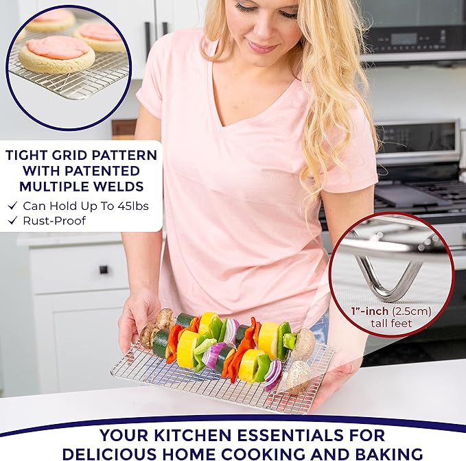 About This Set Of 2 8.5” X 12" Inch Quarter Sheet Pan Rack for Cooling & Oven Cooking: Commercial grade... Read more