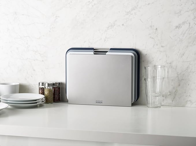 Joseph Joseph Nest Large 3-Piece Color coded Cutting Board Set with Storage Stand, Large - Grey