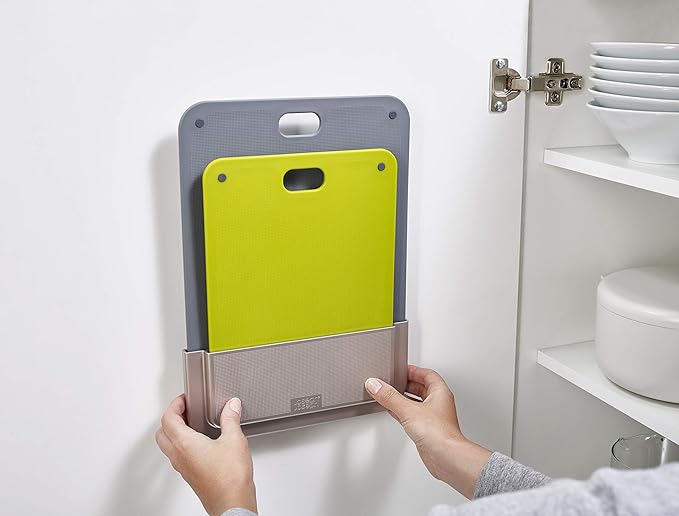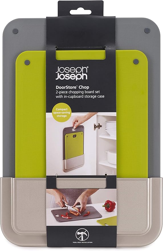 Joseph Joseph DoorStore Chop Cutting Board Set with Storage Case 3M Adhesive Wall and Cabinet Door Mount, 2-Piece, Multicolored