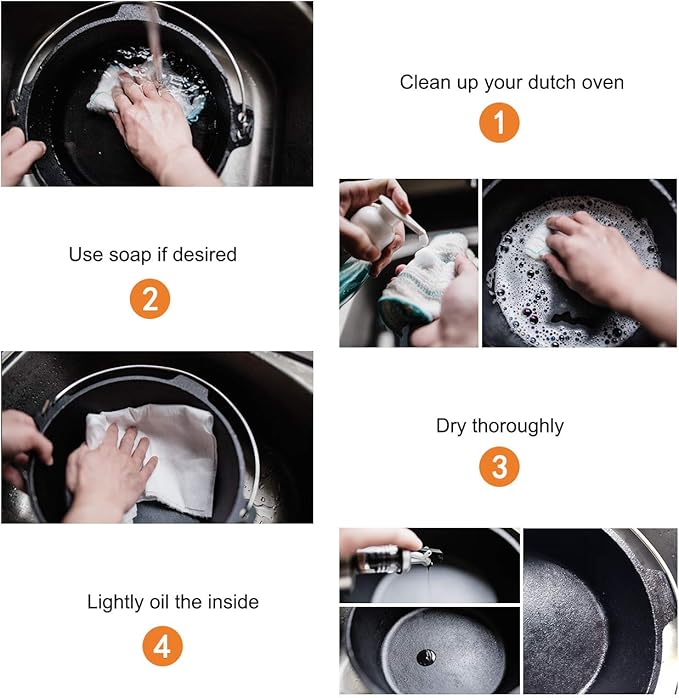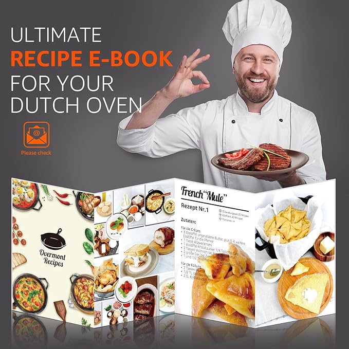 Overmont Camp Dutch Oven Pre Seasoned Cast Iron Lid Also a Skillet Casserole Pot with Lid Lifter for Camping Cooking BBQ Baking 6QT(Pot+Lid)