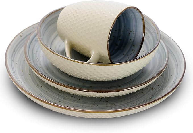 About This Included Components: Four dinner plates, Four salad plate four bowl & four mugs The swirling pattern is balanced... Read more