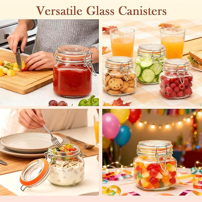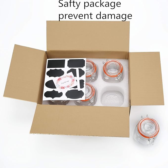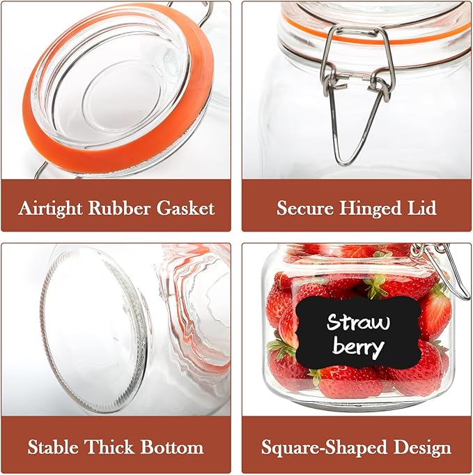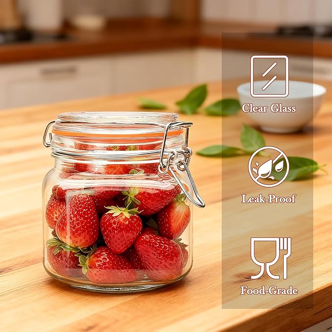 Encheng 25 oz Glass Jars With Airtight Lids And Leak Proof Rubber Gasket,Wide Mouth Mason Jars With Hinged Lids For Kitchen Canisters 750ml, Glass Storage Containers 6 Pack