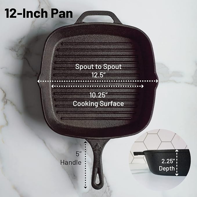 Backcountry Iron 12 Inch Square Grill Pan Large Pre-Seasoned Cast Iron