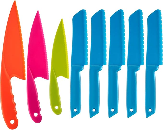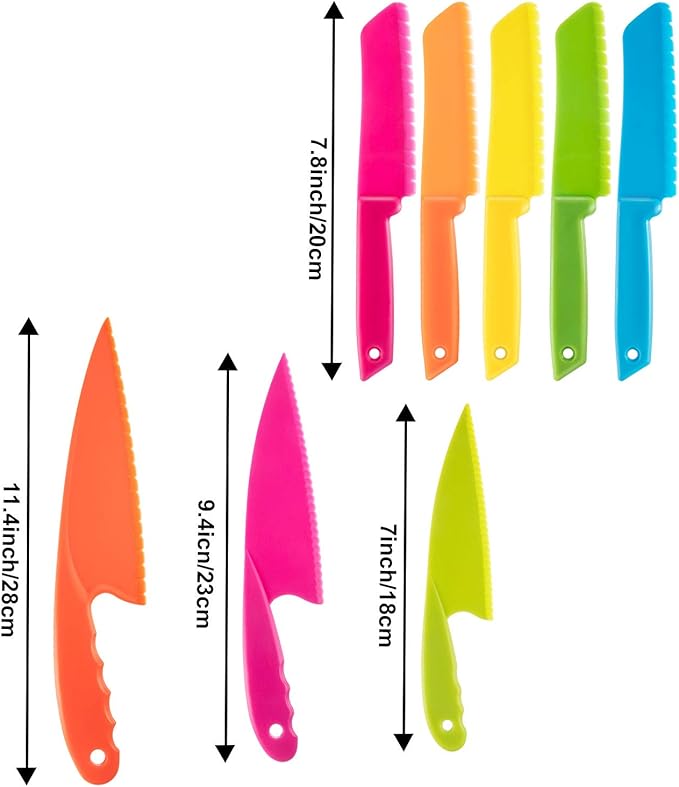 About This Versatile kitchen tools for kids: this nylon knife set contains 5 pieces square knife, 3 pieces cusp shape... Read more