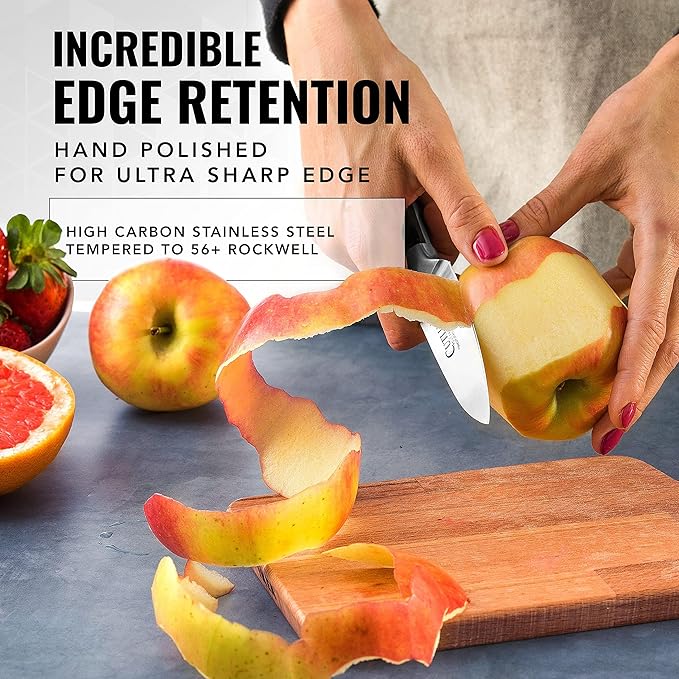 Cutluxe Paring Knife, 3.5" Small Kitchen Peeling Knife with Razor Sharp Blade – High Carbon German Steel, Full Tang, Ergonomic Handle Design – Artisan Series