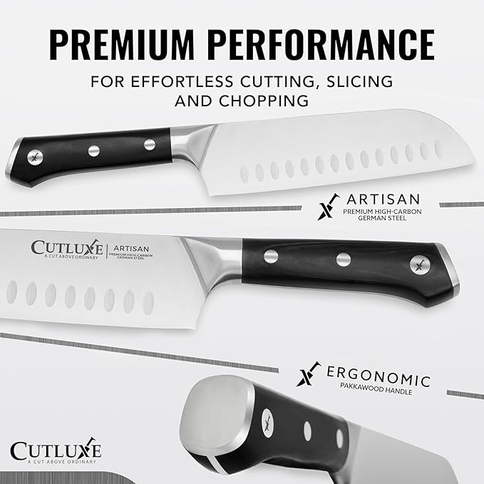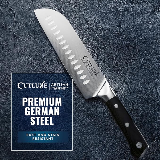 Cutluxe Santoku Knife – 7" Chopping Knife, Vegetable Knife – Forged High Carbon German Steel – Sheath Included – Full Tang & Razor Sharp – Ergonomic Handle Design – Artisan Series