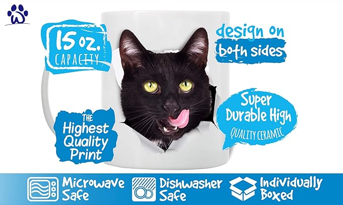 Winston & Bear Thirsty Black Cat Coffee Mug - Funny Ceramic Coffee Mug Gift for Cat Lovers - Cute Novelty Cup for Men and Women (15oz)