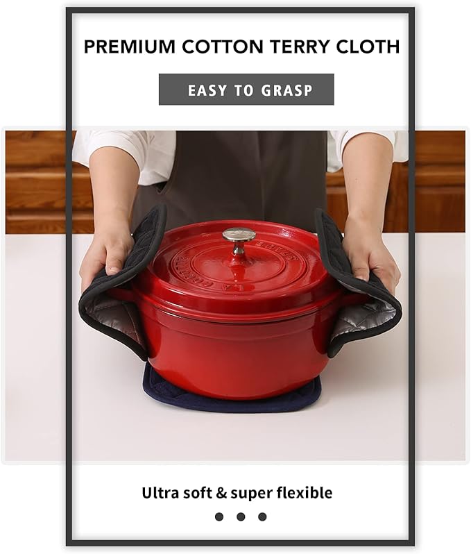 Joyhalo 4 Pack Pot Holders - Heat Resistant Oven Hot Pads, Terry Cloth, Black
