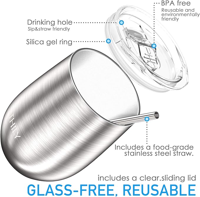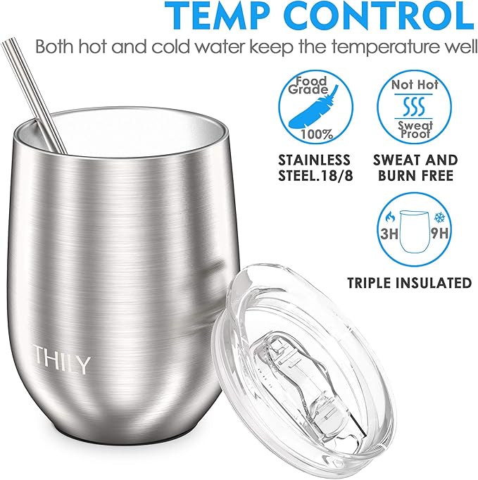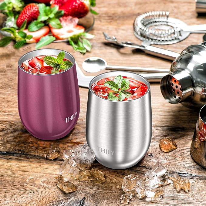About This PREMIUM MATERIAL OFFER HEALTHIER DRINKING WAY - THILY stemless vacuum insulated wine tumblers are crafted from 304 food-grade... Read more