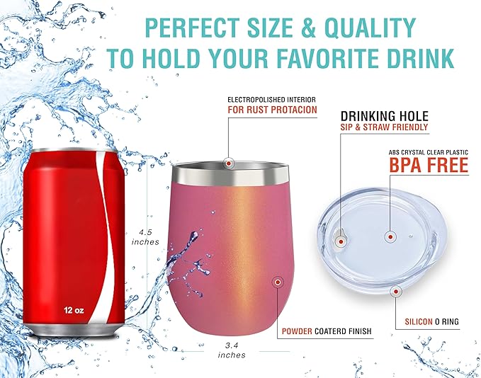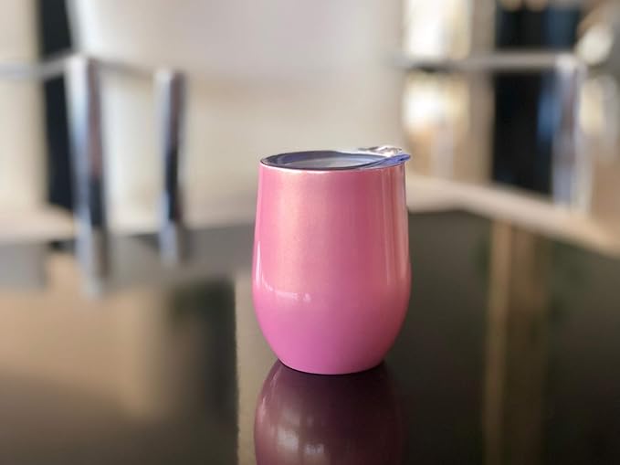 CHILLOUT LIFE 12 oz Stainless Steel Tumbler with Lid & Gift Box - Wine Tumbler Double Wall Vacuum Insulated Travel Tumbler Cup for Coffee, Wine, Cocktails, Ice Cream - PINK SPARKLE