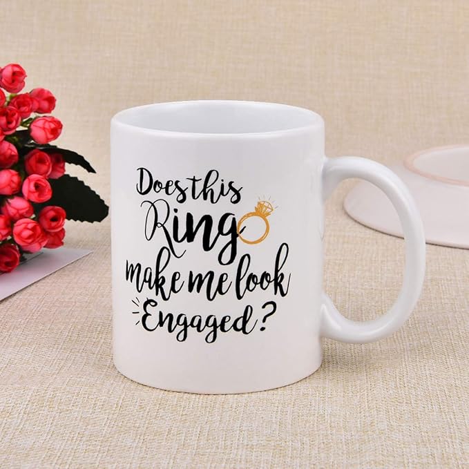 Maustic Funny Coffee Mug Does This Ring Make Me Look Engaged Coffee Tea Cup Funny Mug Novelty Coffee Mug for Men Women Birthday Festival Christmas Engagement