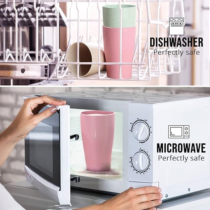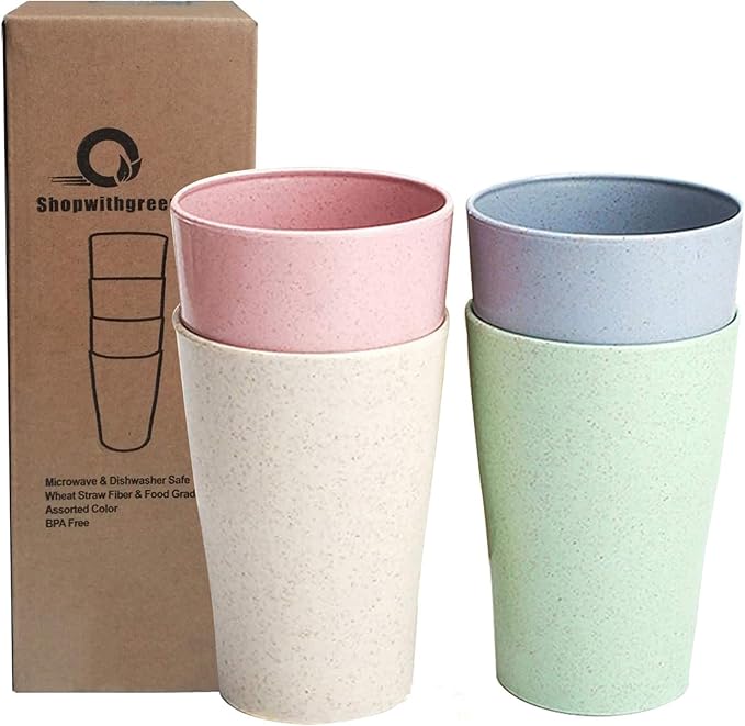 shopwithgreen 14 oz Wheat Straw Cups, Unbreakable Drinking Glasses Stackable | Reusable Water Tumbler, Mug Set for Coffee, Wine, Camping, BPA-Free | Dishwasher & Microwave Safe