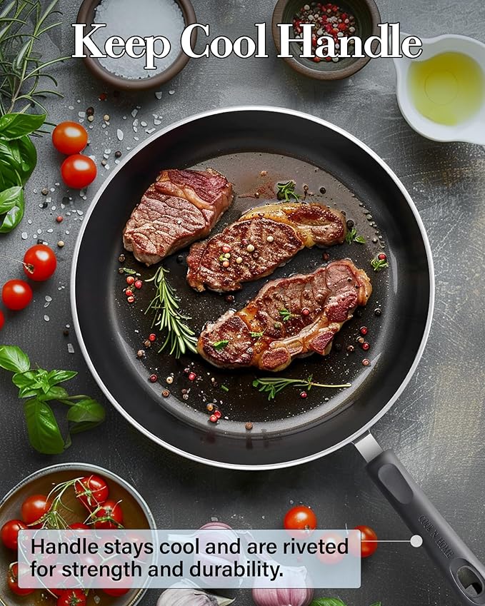 About This Nonstick Frying Pan Set: Skillets set includes 8 inch, 9.5 inch, 11 inch fry pans; Ideal for everyday... Read more