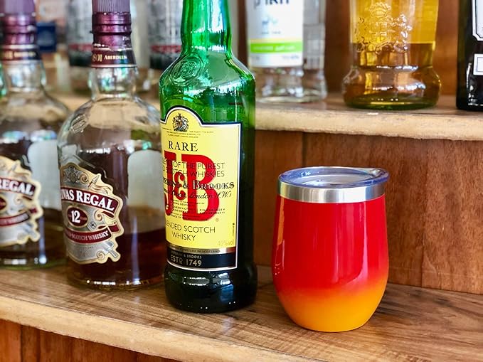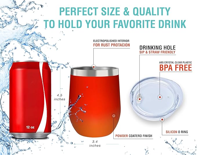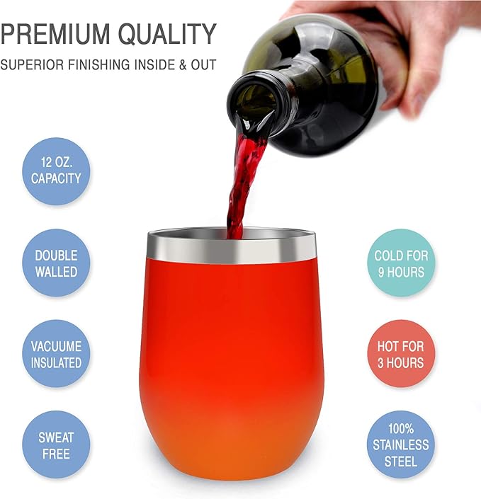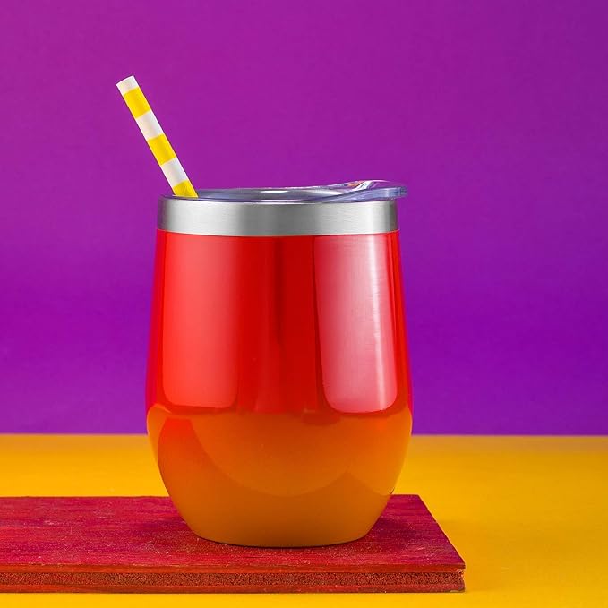 CHILLOUT LIFE 12 oz Stainless Steel Wine Tumbler with Lid - Double Wall Vacuum Insulated Wine Cup Glass Keeping Cold & Hot for Coffee, Champagne, Cocktails, Ice Cream - Red Fire