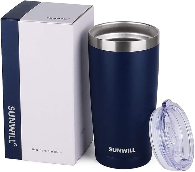 SUNWILL Travel Coffee Tumbler 20 oz, Insulated Mug with Lid, Stainless Steel Cup for Outdoor, Powder Coated Navy