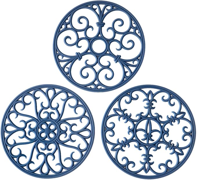 Silicone Trivet Mat - Hot Pot Holder Hot Pads for Table & Countertop - Teapot Trivet Kitchen Trivets - Non-Slip & Heat Resistant Modern Kitchen Hot Pads for Pots & Hot Dish Navy Blue Trivet Set of 3