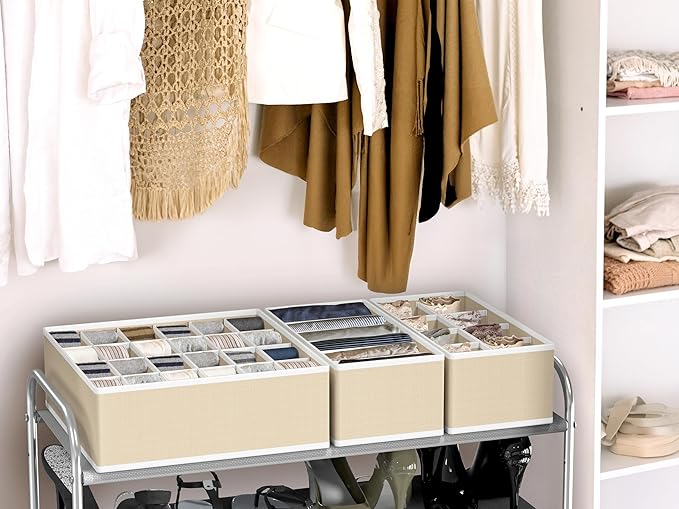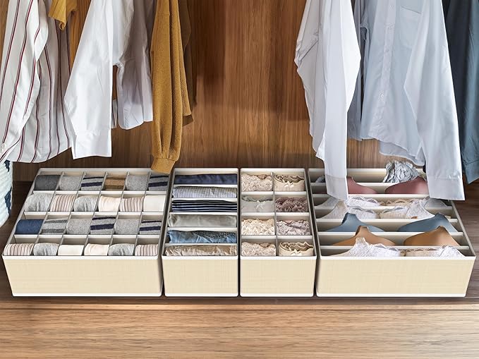 Simple Houseware 4-Pack Drawer Organizer Set - Closet Dividers for Underwear, Socks, Bras, Scarves, Ties - Foldable Non-Woven Storage Boxes, Beige