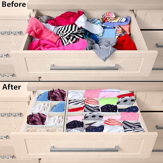 About This 4 Versatile Organizers - Includes 6 cell(scarves, ties), 8 cell(underwear, briefs, ties), 7 cell(bra), 24 cell(socks) bins to... Read more