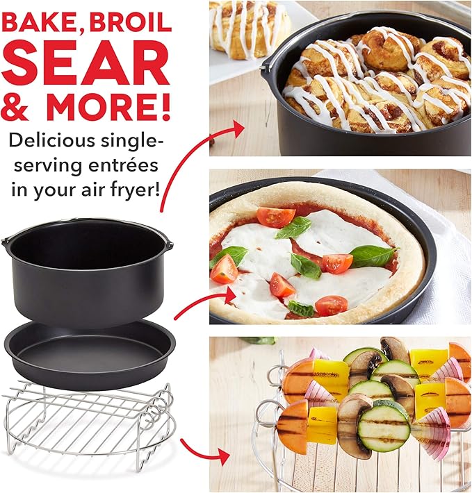 About This 6 ACCESSORIES INCLUDED: The accessory kit includes 7-inch Deep Baking Pan, 8-inch Pizza pan, Double-layer rack, and 3... Read more
