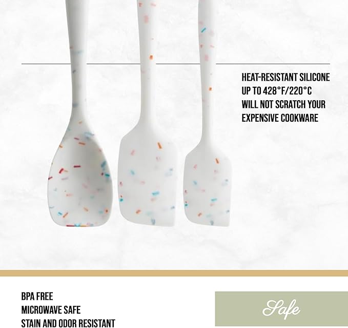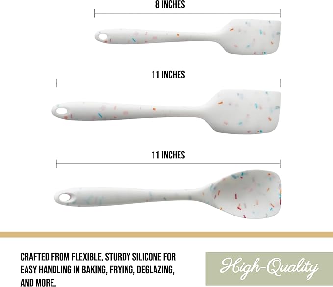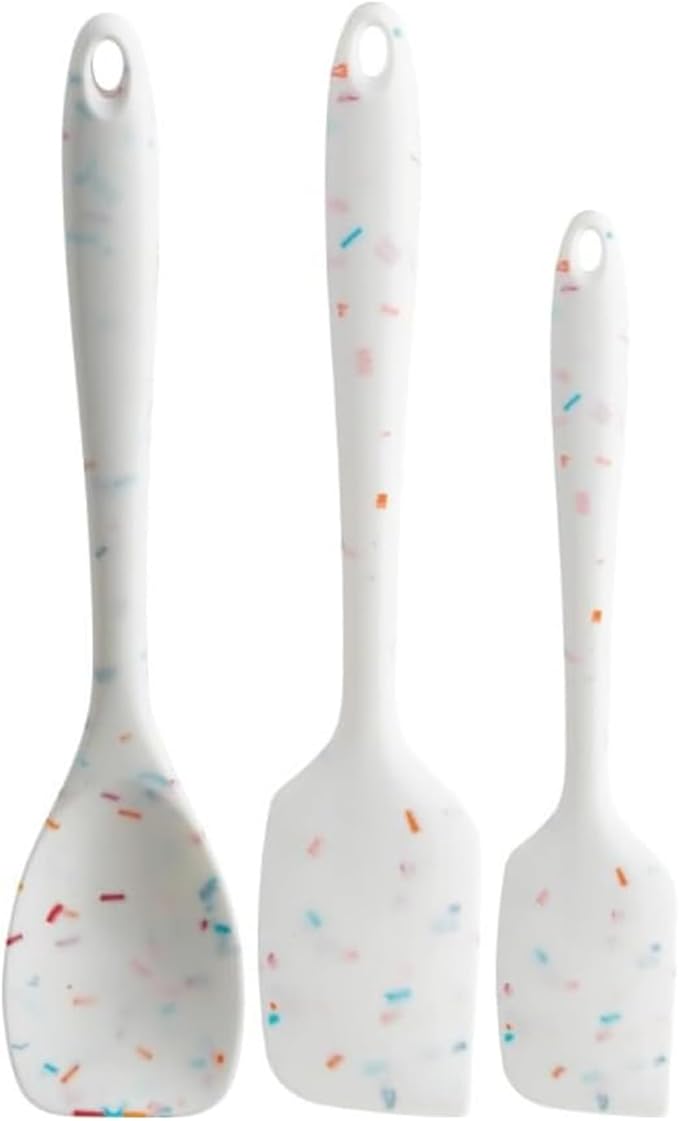 Trudeau Confetti Silicone Utensil Set – 11" Spatula, 11" Spoonula & 8" Small – Reinforced hybrid flexible silicone, BPA-free, heat resistant to 428°F, ergonomic & dishwasher safe.