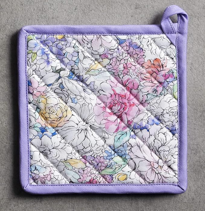 Maison d' Hermine Pot Holders Set 100% Cotton Heat Resistant Potholders 8" x 8" Hot Pads with Loop BBQ, Cooking, Baking, Grilling, Kitchen, Handling Hot Pans Spring/Summer (Pack of 2, Floral Love)
