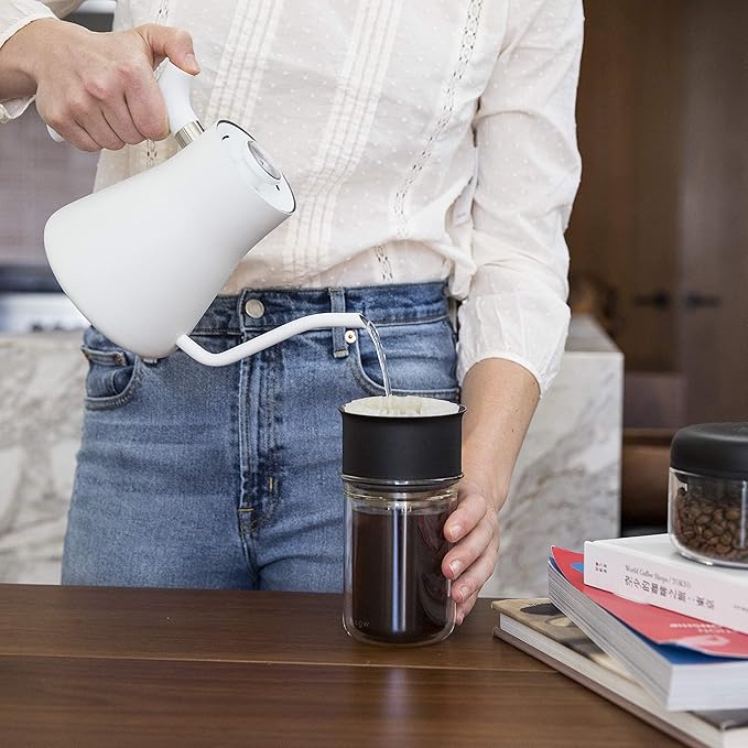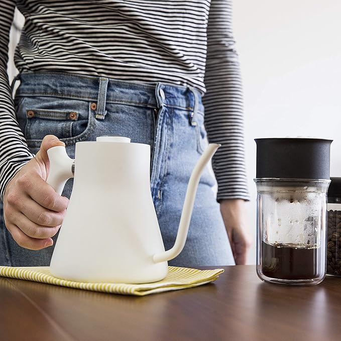 Fellow Stagg Stovetop Pour-Over Coffee and Tea Kettle - Gooseneck Teapot with Precision Pour Spout, Built-In Thermometer, Matte White, 1 Liter