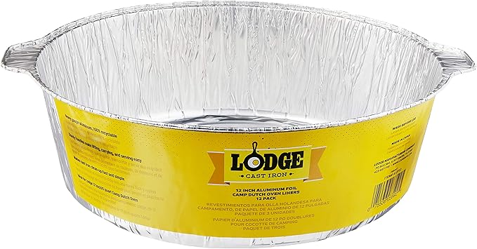 Lodge Silver 12 Inch Aluminum Foil Dutch Oven Liner - 100% Recyclable Dutch Oven Liner - Easy Camp Cooking Cleanup - 12 Pack