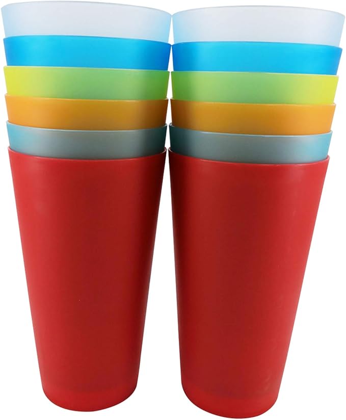 Reusable Plastic Cups 32 oz - Large Cups Dishwasher Safe - BPA Free Plastic Tumblers Drinking Glasses set of 12 - Unbreakable Big Cup for Kitchen Party Camping Outdoor