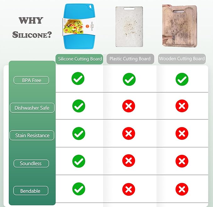 Liflicon Thick Silicone Cutting Boards for Kitchen Silicone Chopping Boards/Mats Set of 2 Extra Large14.6''x10.43'', Mini 9.1”x7.1” Non-slip Deep Drip Juice Groove, Dishwasher Safe-Blue