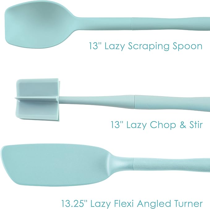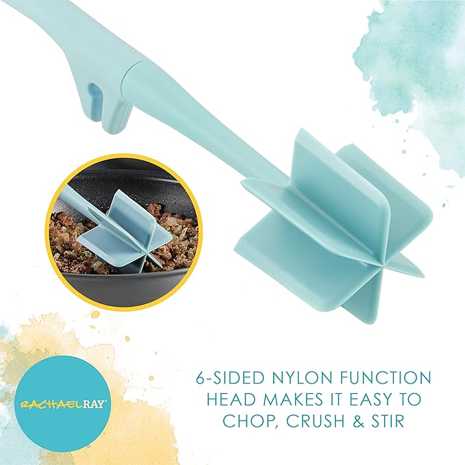 Rachael Ray Tools and Gadgets Lazy Crush & Chop, Flexi Turner, and Scraping Spoon Set / Cooking Utensils - 3 Piece, Light Blue