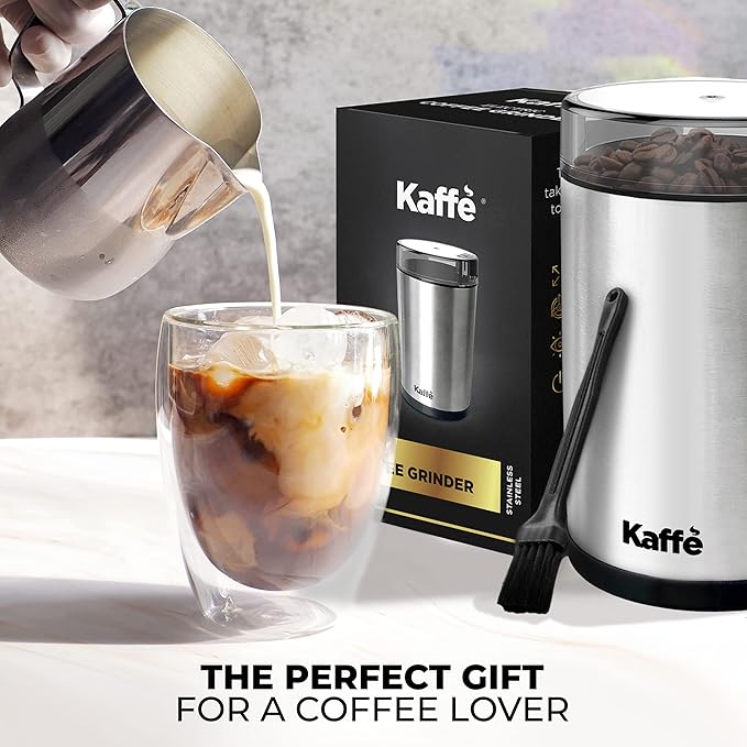Kaffe One-Touch Coffee Grinder Electric w/Cleaning Brush (3 oz) - Stainless Steel - Coffee Grinders for Home Use - Up to 12 Cups of Coffee per Grind - Easy On/Off Coffee Bean Grinder - Copper
