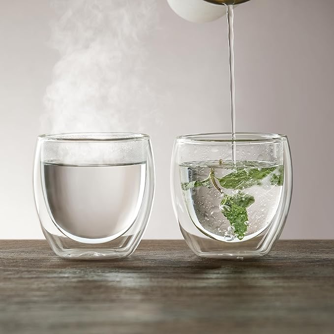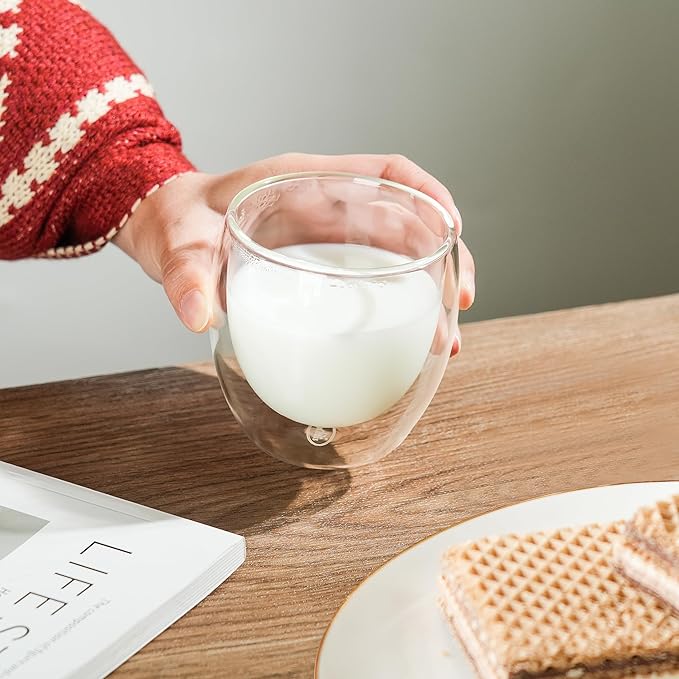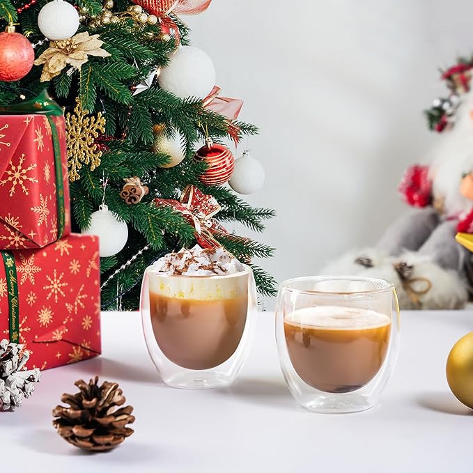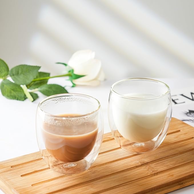 CNGLASS Double Wall Glass Espresso Cups 8.5 oz,Clear Insulated Glass Coffee Mug for Cappuccino,Tea,Set of 2