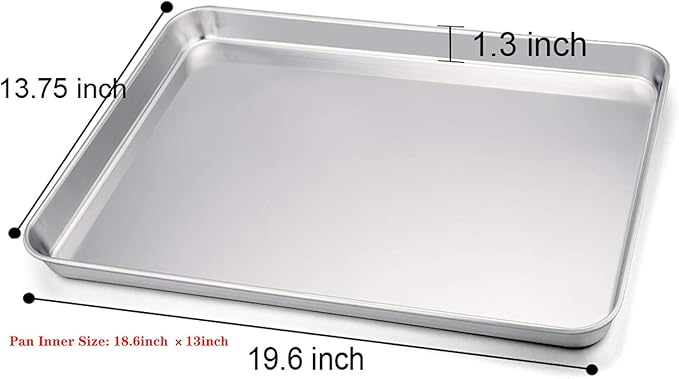 About This HALF SIZE - Half sheet pan set of 2, both 19.6’’×13.75’’×1.3’’, Xlarge and sufficient for the amount of... Read more