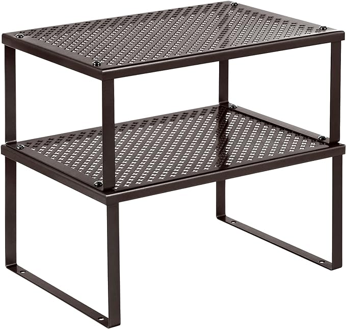 SONGMICS Spice Racks, Set of 2 Metal Cabinet Shelf Organizers, Countertop Organizers, Shelf Risers, Stackable, Expandable, Brown UKCS01BR
