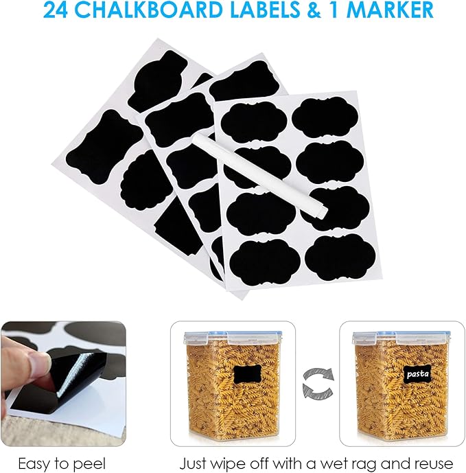 Vtopmart Large Food Storage Containers 5.2L / 175oz, 4 Pieces BPA Free Plastic Airtight Canisters for Flour, Sugar, Baking Supplies, Rice with Lids, 4 Measuring Cups and 24 Labels, Blue