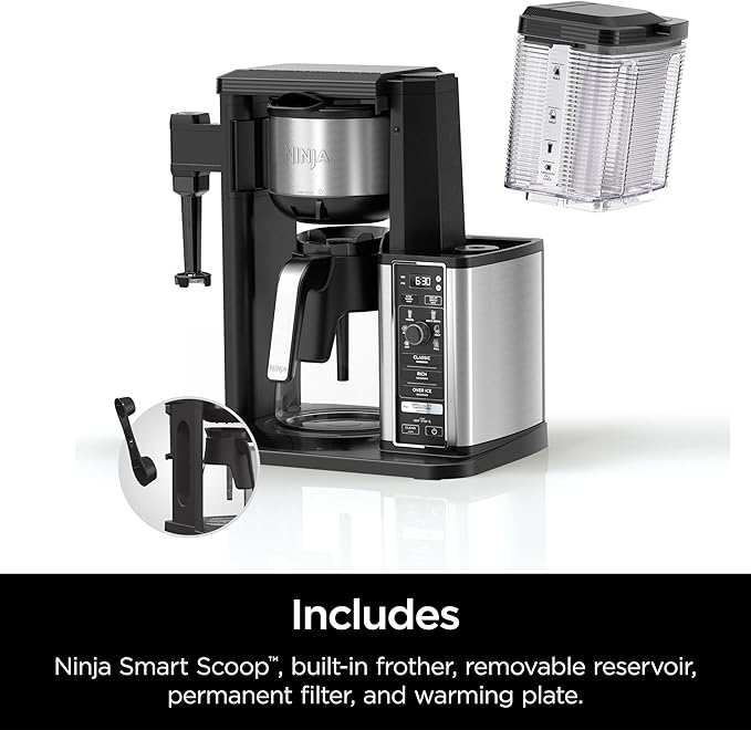 Ninja Specialty Coffee Maker, Hot & Iced Coffee, 6 Brew Styles, 8 Sizes, Small Cup to Travel Mug, 10-Cup Carafe, Fold-Away Frother, Permanent Filter, Removable Reservoir, Black, CM401