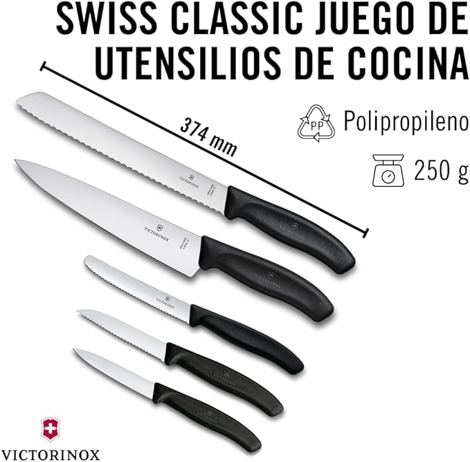 Victorinox Swiss Classic Kitchen Set - Includes Paring Knives, Carving Knife, Bread Knife & More - Premium Kitchen Accessories - Black Handles, 5-Piece Set