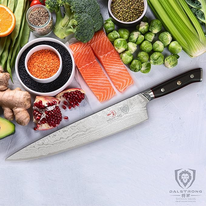 Dalstrong Chef Knife - 12 inch Long Blade - Shogun Series ELITE - Damascus - Japanese AUS-10V Super Steel Kitchen Knife - Black G10 Handle Cooking Knife - Razor Sharp Chef's Knife - w/Sheath