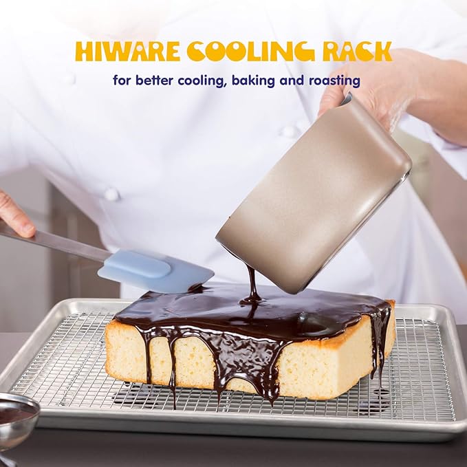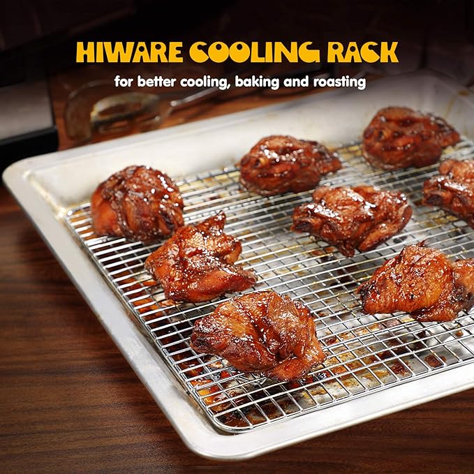 Hiware 2-Pack Cooling Racks for Baking, Stainless Steel Wire Rack Baking Rack Oven Rack Cookie Rack, Oven Safe, Rust-Resistant Rack for Cooking, Baking, Roasting and Grilling - Fit Half Sheet Pan