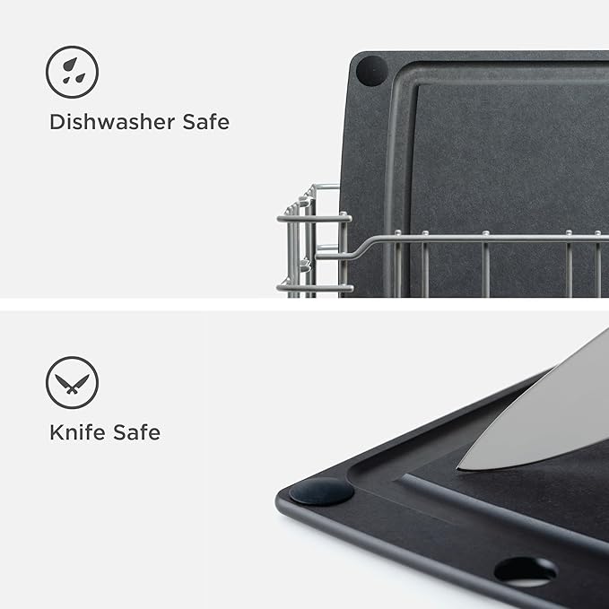 About This 11. 5" X 9" Cutting board with non-slip feet and juice groove in slate; black silicone feet Modified... Read more
