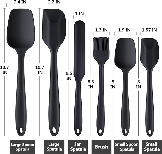 Spatulas Set of 6, Food Grade Silicone Spatulas, Heat Resistant, Seamless One Piece Design, Stainless Steel Core, Kitchen Utensils Nonstick for for Cooking, Baking and Mixing (Black)