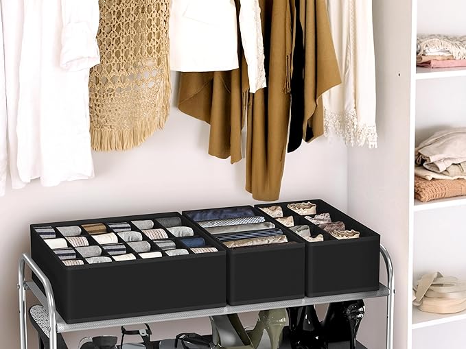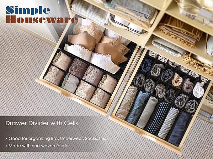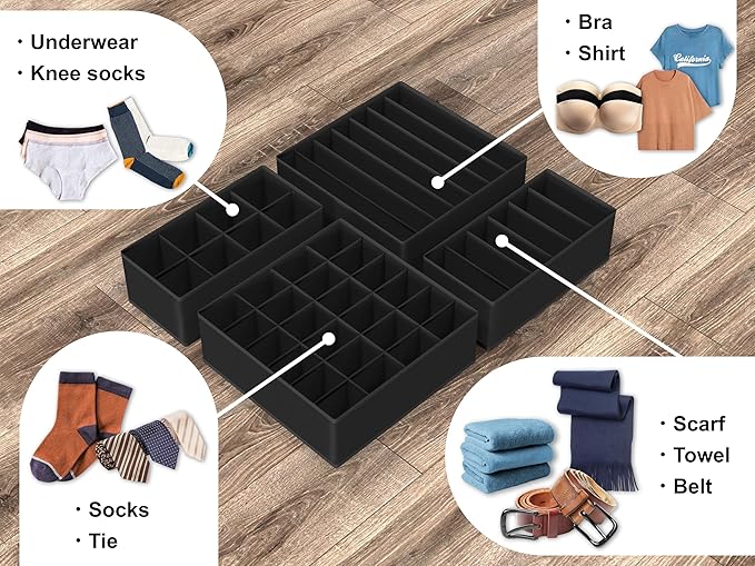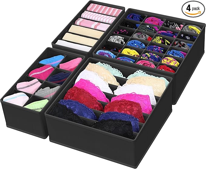 Simple Houseware 4-Pack Drawer Organizer Set - Closet Dividers for Underwear, Socks, Bras, Scarves, Ties - Foldable Non-Woven Storage Boxes, Black