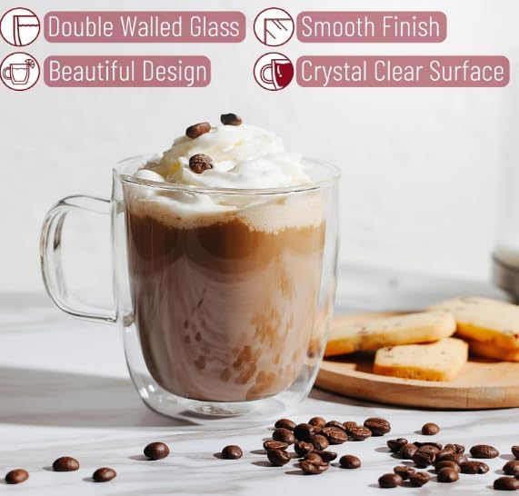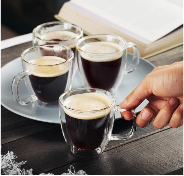 BTaT- Espresso Cups, Espresso Coffee Cups, Set of 4 (5 oz, 150 ml), Glass Coffee Mugs, Double Wall Glass Cups, Cappuccino Cups, Latte Cups, Latte Mug, Clear Coffee Cup, Espresso Glass, Glass Tea Cups
