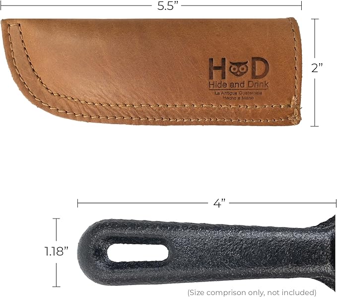 Hide & Drink, Full Grain Leather Hot Handle, Cast Iron Protector, Panhandle Potholder, Double Layered, Double Stitched, Slides On/Off Easily onto Metal Skillet Grips, Handmade, Single Malt Mahogany