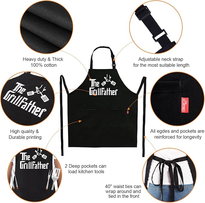 About This FUNNY DAD APRONS: With hilarious saying "The Grillfather", our mens funny aprons are great gifts for dad, papa,... Read more