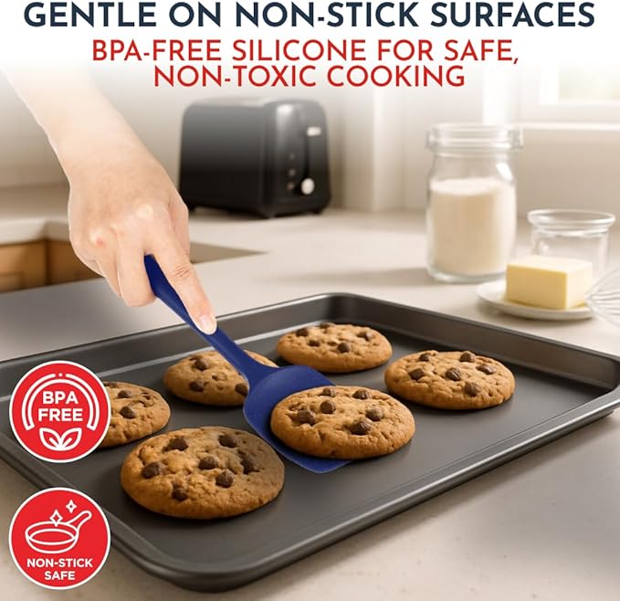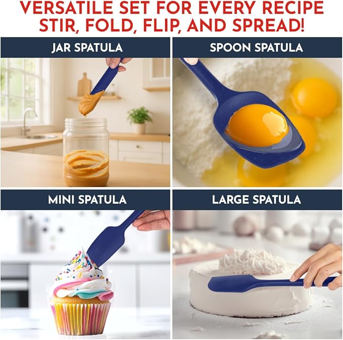 4-Piece Blue Baking Spatula Set - Holiday Baking Essentials, Rubber Spatulas Silicone Heat Resistant, BPA-Free - Spatula Set for Nonstick Cookware - Silicone Baking Utensils